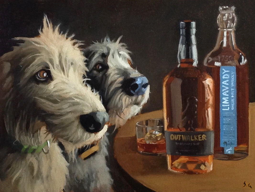 Created by Irish artist Stephen Gallagher, Restless Spirits is a playful tribute to our hotel’s most loved residents — Darcy and Paddy, two Irish Wolfhounds with a nose for great whiskey. In this charming illustration, the hounds are tempted by Outwalker and Limavady Irish Whiskey.